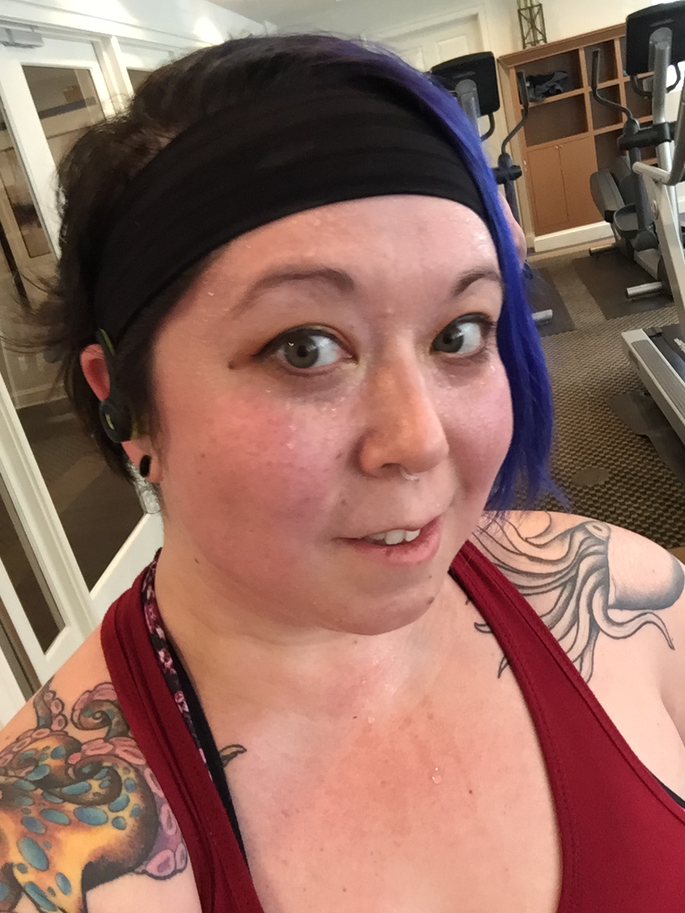 This was after my HIIT run, and clearly I was sweating. But it stayed on.