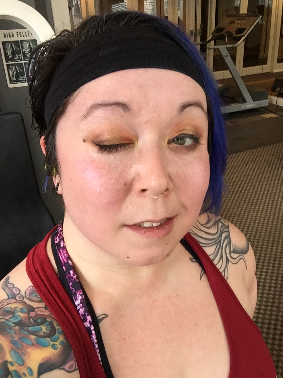 Have you ever seen those girls go to the gym wearing make up and leaving looking great still? I have… and I got to conduct an experiment today to see how much my face will melt. I accidentally forgot to take off my full face of make up before going to the gym today. So I got a chance to see if and how well my make up stood up against the onslaught of my workout today.