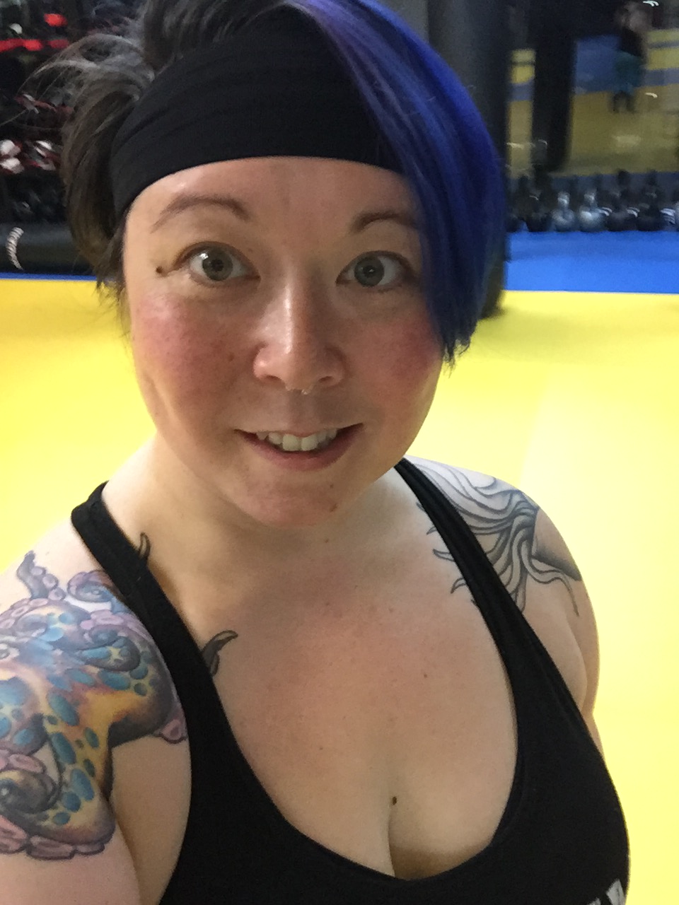 I do… So lately I have been working on putting more power into my knees and kicks. Which means swinging my arm on same side as kick past my hip for more leverage, and trying to kick through my opponent. I was working on a knee entry to 4 count, putting power into kicks, as well as still working on distance management in our drill. Kru Kristen watched me drill it out. What was I doing? Well I am slapping the pads again, instead of doing my full extension punches, with power. I am basically pawing at the pads. That is what Kru Kristen said. What I was doing when I first started up till 3 or 4 months ago. I worked on getting my extension and power into my punches, and here I am making the same mistakes I made before. I was so annoyed at myself.