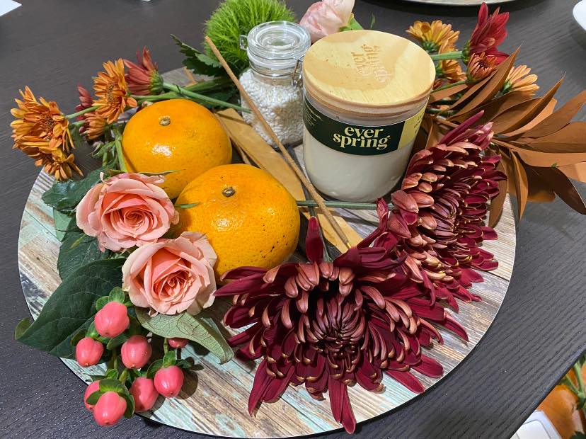 We give rice, fruit, incense, a candle, and flowers traditionally. I always sit and think about the flowers to put on it. We don’t have the same traditional flowers that are used in Thailand. It was a really fun day of class today. But it was also special to honor or teacher. We love her and want her to know that.