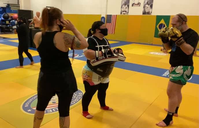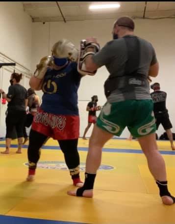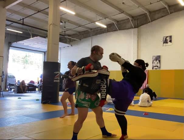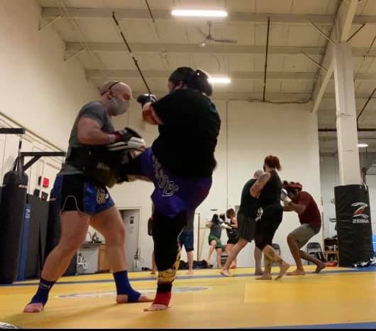 Muay Thai Training: class focus is on keeping our feet moving, and cover/block, and return strikes