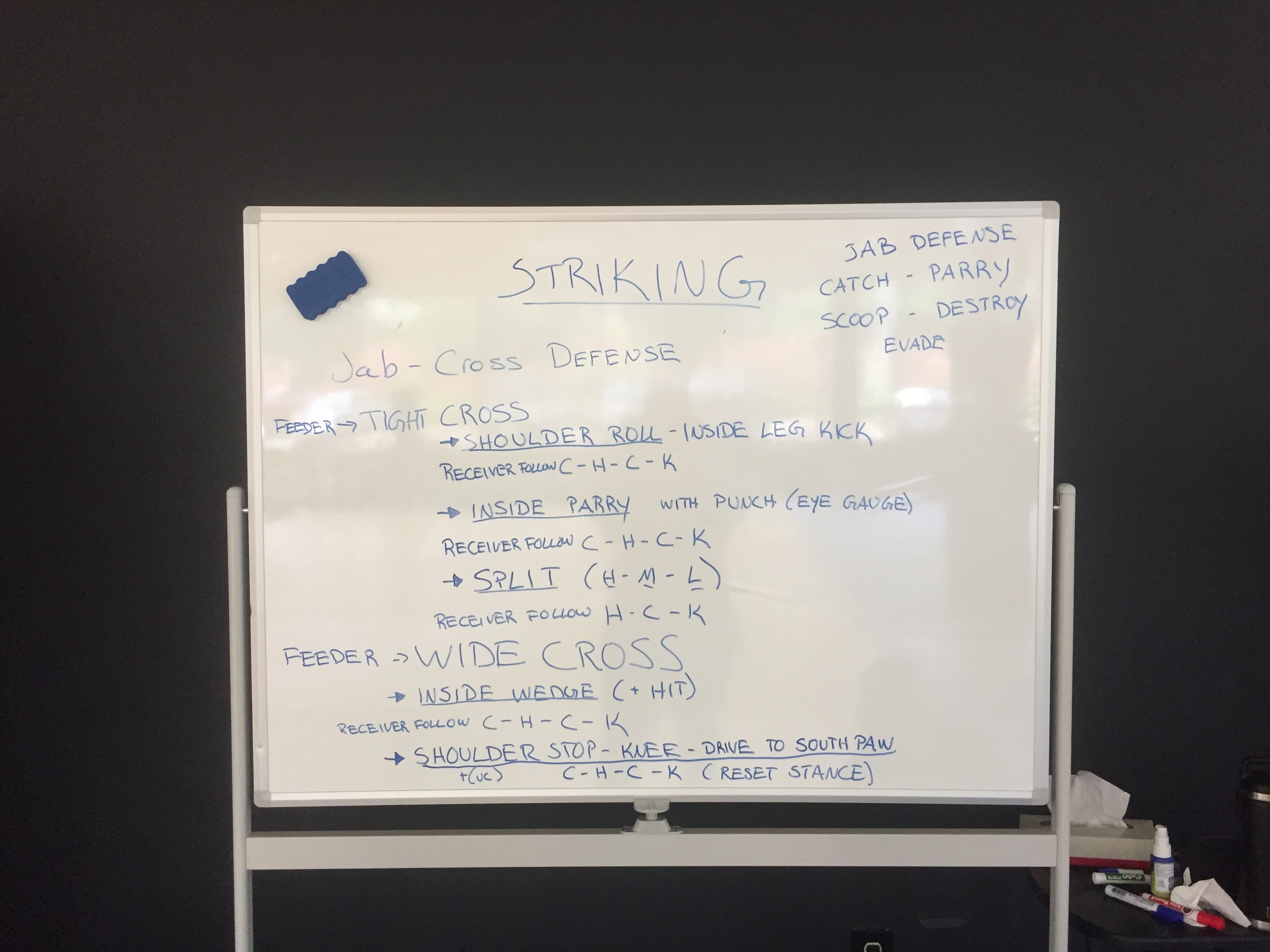 We worked on how to address, respond, and return attack when you are fighting a person who knows how to box/punch. For instance when they throw a tight Cross.