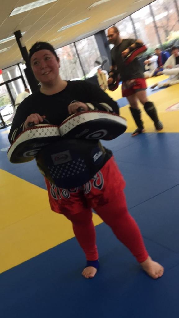 2.5 hours of Muay Thai and Kali. I am bushed, but so very pleased. We got to learn new things, and you will get to see me mess up the new drills. Woot! But my hope is to get better over time. Also D.O.M.S. (Delayed Onset Muscle Soreness) set in early today. At about 11 am I noticed my hamstrings and glutes hurt when I tried to squat down onto the floor. Woo Hoo Ouch!… that is how you know you did a good workout yesterday.