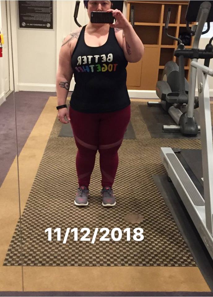 Ok at this point, I am debating just deleting this whole blog post. I don’t like my pictures and possible I never will. Why is it so hard to post this? Maybe I feel vulnerable? My little inner demons nipping away at my heels. Saying, “you are ugly and fat, and no one wants to see this.” But this is my progress. Not as far as I would love to be after 4 years., but I have had some setbacks. The kidney stone, cancer being a major one, broken toe, and then herniated disk. I tell my friends to be kind to themselves. Why is it so hard for me to be kind to myself? I strive for perfection I will never have… I guess…