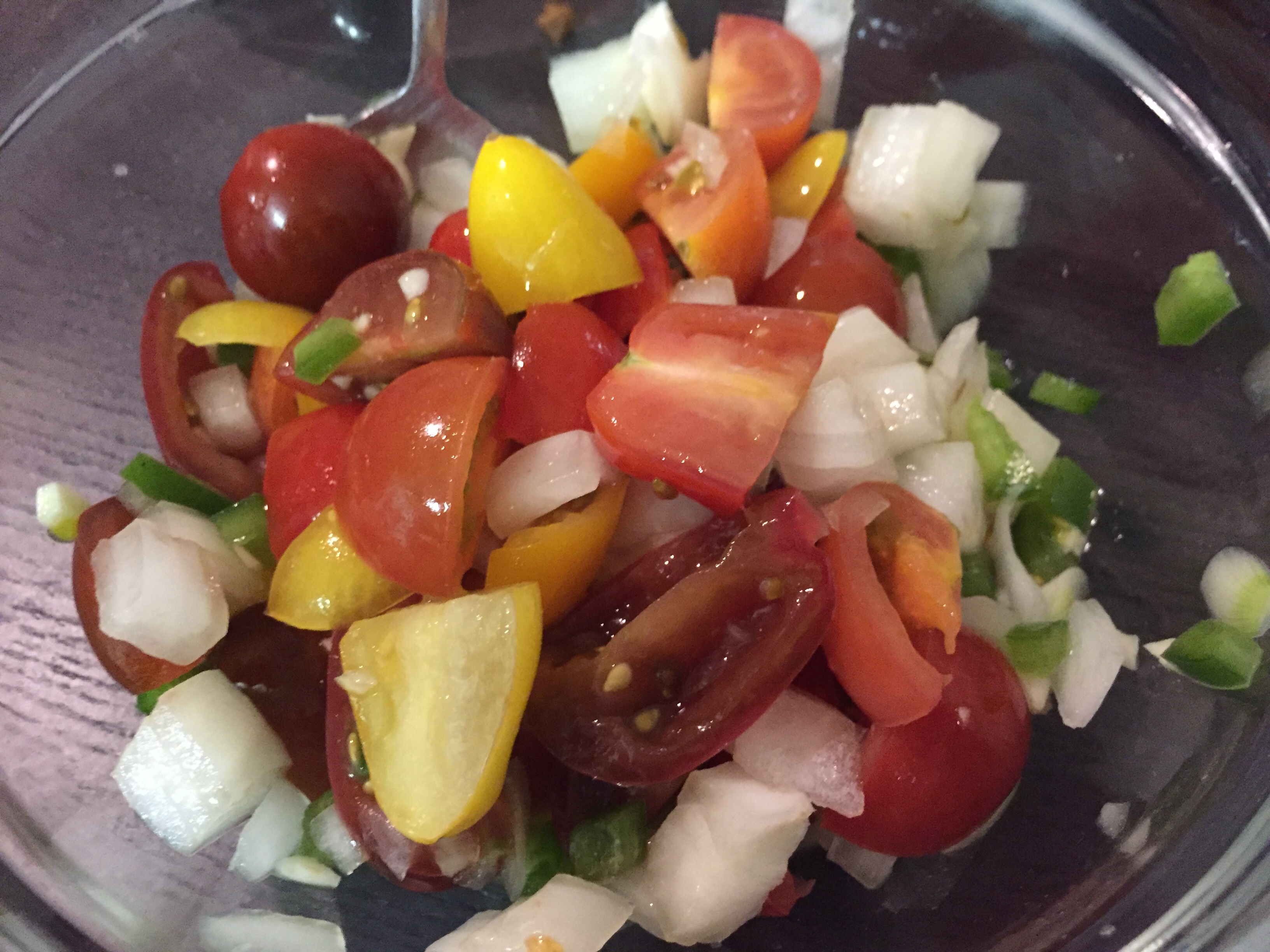 2 small tomatoes diced or about 25 heirloom cherry tomatoes