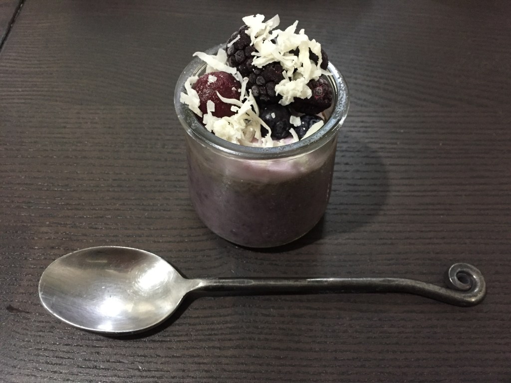 So for today I made a berry chia coconut pudding. Aside from the coconut milk which I was out of. All these ingredients I regularly have in my pantry. Because I love to use them in my foods.