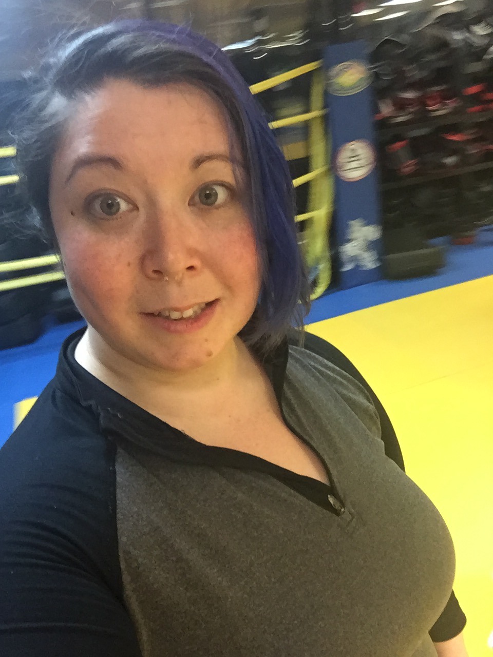Then I was asked to spar. I kinda made a meep sound and said yes… sure. Sparing is both hard and scary for me. I fear I will forget all the things I have been taught. I know that forgetting is normal, and I know we all forget some of what we have learned in the moment when the adrenaline drops. However, I want so much to do well, oh and also not get hit a lot. I have gotten better about being scared of being hit. I have been hit a number of times in the head, I have been kicked in the side, and kneed in the leg and kicked in the leg. However, the fear is still there. One day it won’t be so scary but it still is. I don’t plan on being a fighter professionally, however, part of me is excited about the next time I get to spar.