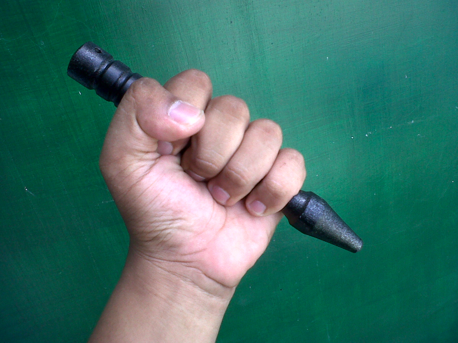 So when your attacker throws a punch instead of parrying, or blocking you can hit your opponents hand with a palm stick, sharpie, flashlight, or the punyo/butt of a bladed weapon. Most people will stop trying to punch you if you hit them with this. Also it has a good chance of breaking their hand.