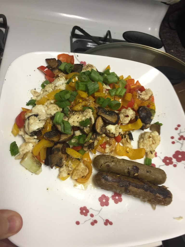 This is a simple breakfast. Its something that I do often. I waffled over if I should post it because it is so simple. But it is delicious vegetarian, full of protein, nutrients, and vegetarian. Which my body seems to run better on anyway. =)