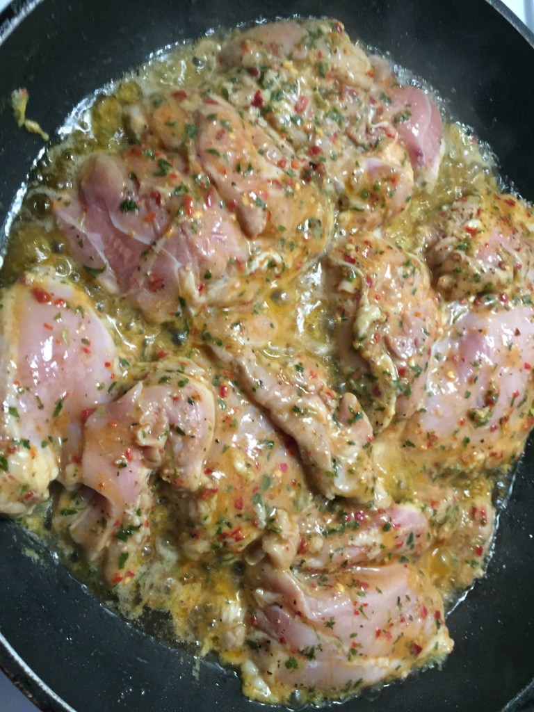 Mix all ingredients together. Let sit for at least a few minutes. Letting it sit for 2 hours before use is much better. Marinate meat over night, reserve some for topping.