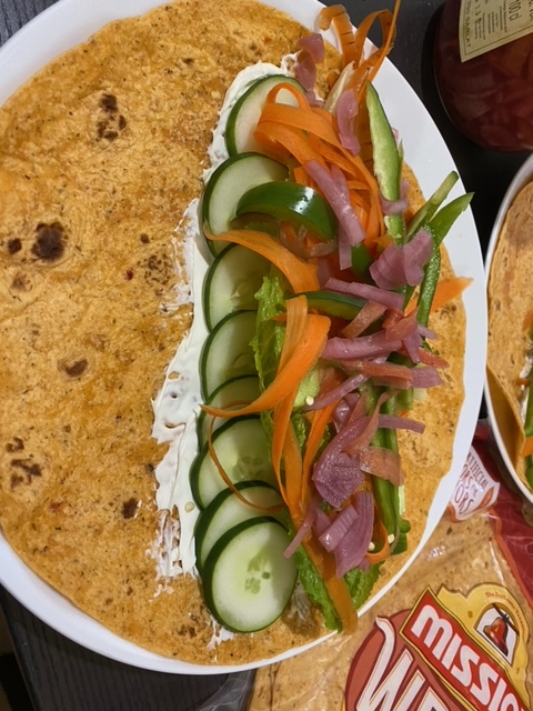 1 wrap of your choosing ( I used Sun Dried Tomato Basil wraps)