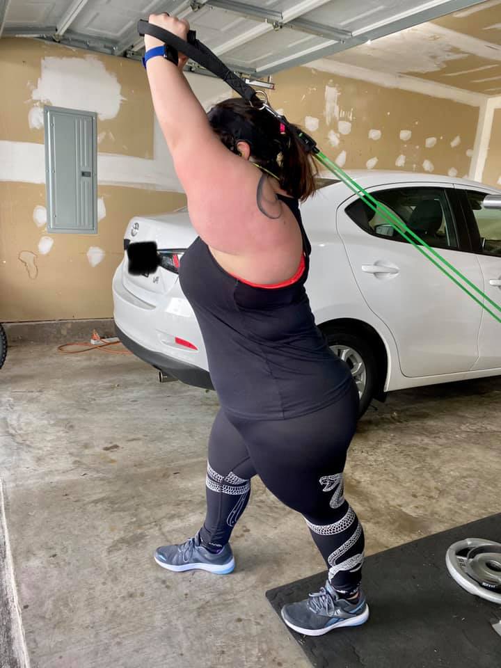 2) overhead resistance band tricep extensions – 12, 12, 12